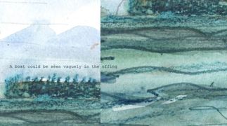 My paintings reference the still of landlocked spaces and the volatility of coastal landscapes. They call to mind a horizon or a field inviting the viewer to imagine a world tilting between certainty and uncertainty. A surface built of fluid washes, glimpses of text, and graphic mark making capturing the elusiveness of memory like an ebbing tide.